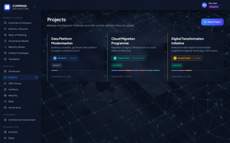 CompassWorks is a SaaS platform that operationalises the COMPASS framework — a structured, human‑centric approach to architecture, governance, and operational assurance.